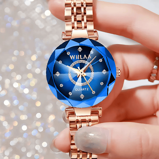 Reloj Pulsera De Dama Lujo Cuarzo Azul Acero Seno Elegance