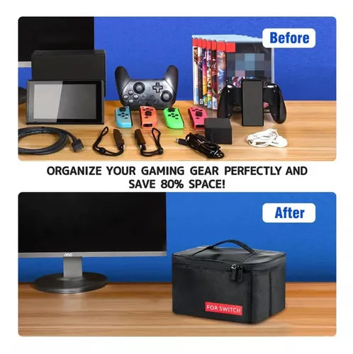 Esta maleta no solo puede llevar la consola 🕹️, sino también almacenar Joy-Con 🎮, controlador, adaptadores, cable de carga, tarjeta de juego, auriculares y otros dispositivos.