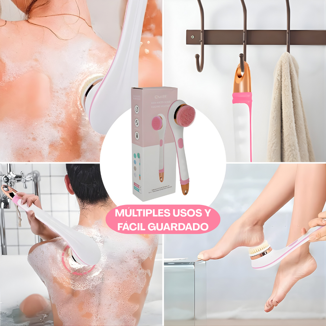 ✨Este cepillo corporal recargable 4 en 1 limpia, masajea y revitaliza tu piel, dejándola suave y radiante.🌸