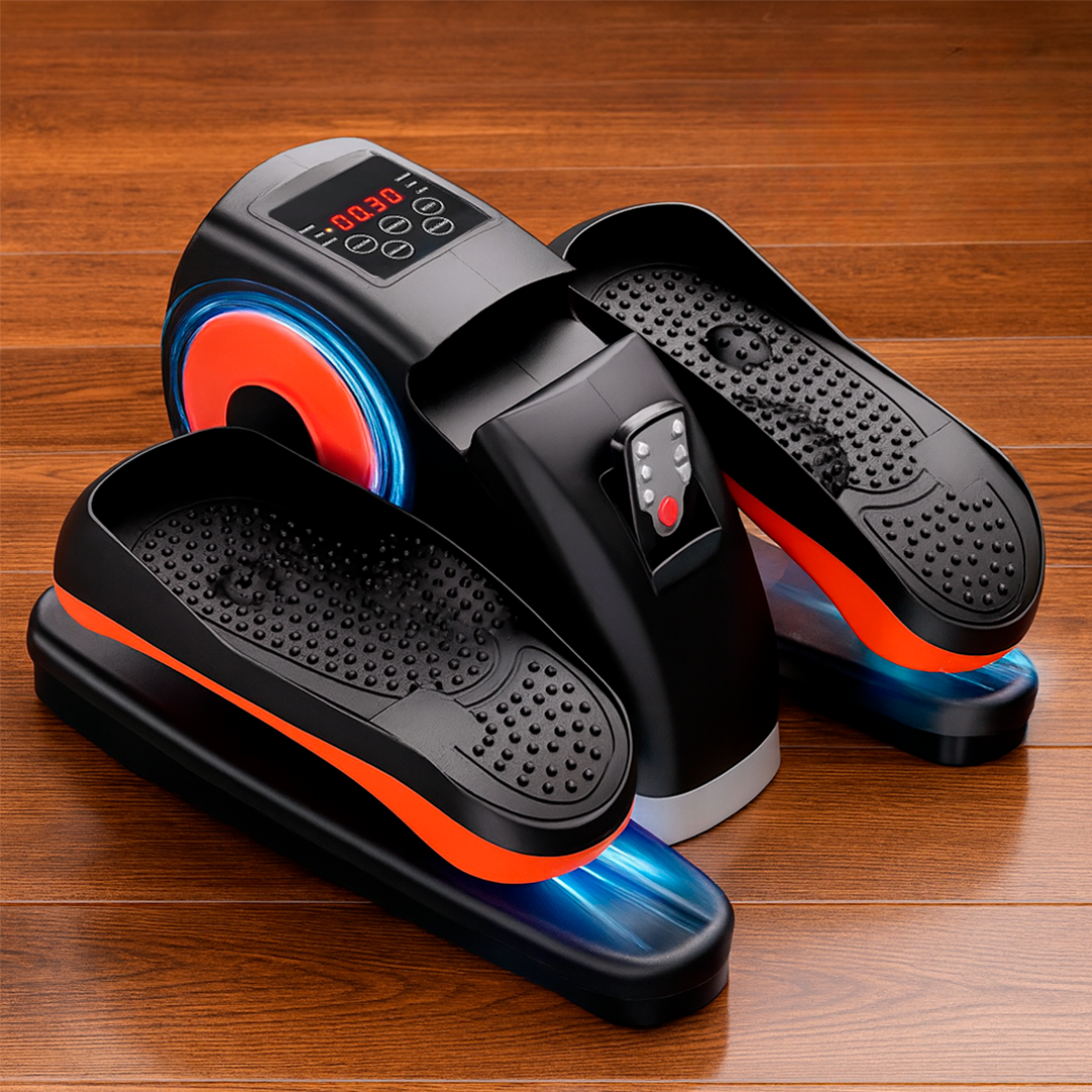 Con este ejercitador podés mover tus pies y piernas sin hacer esfuerzo, mientras estás sentado. Es perfecto para mejorar la circulación, evitar calambres y mantenerte activo sin necesidad de pararte.