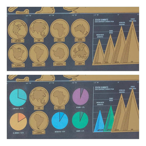Con este mapamundi puede registrar sus viajes rascando de la lámina superior del mapa en el lugar que ha visitado, revelando un mapa colorido debajo.