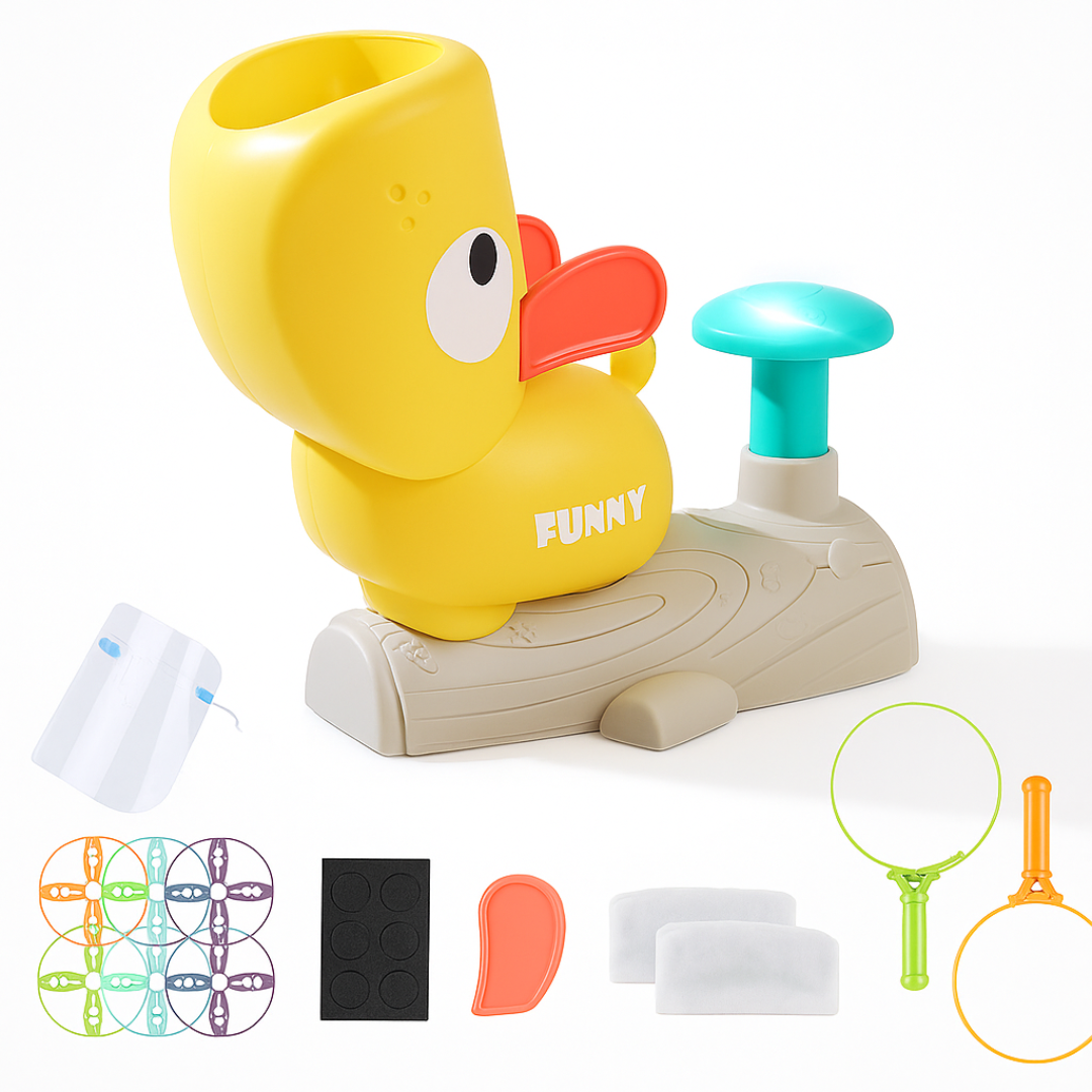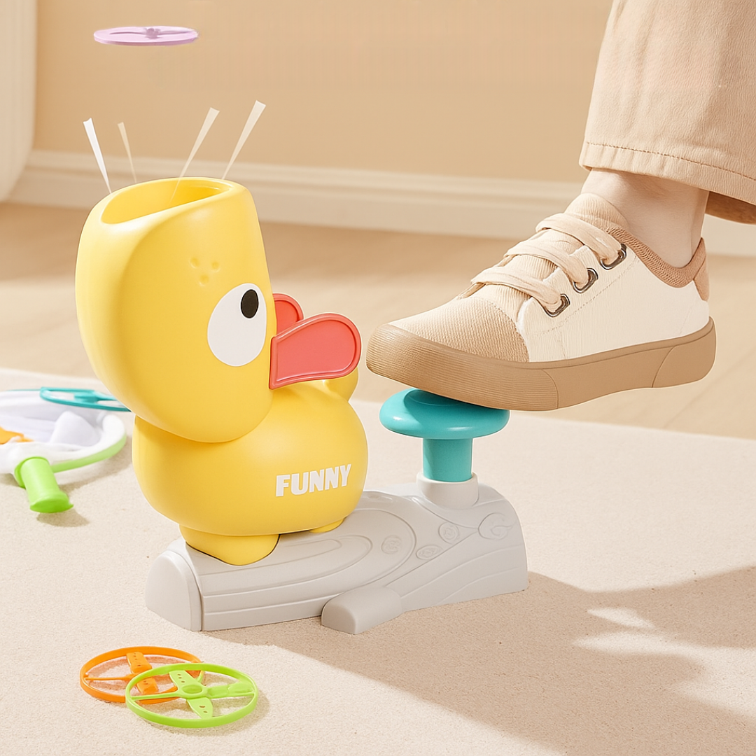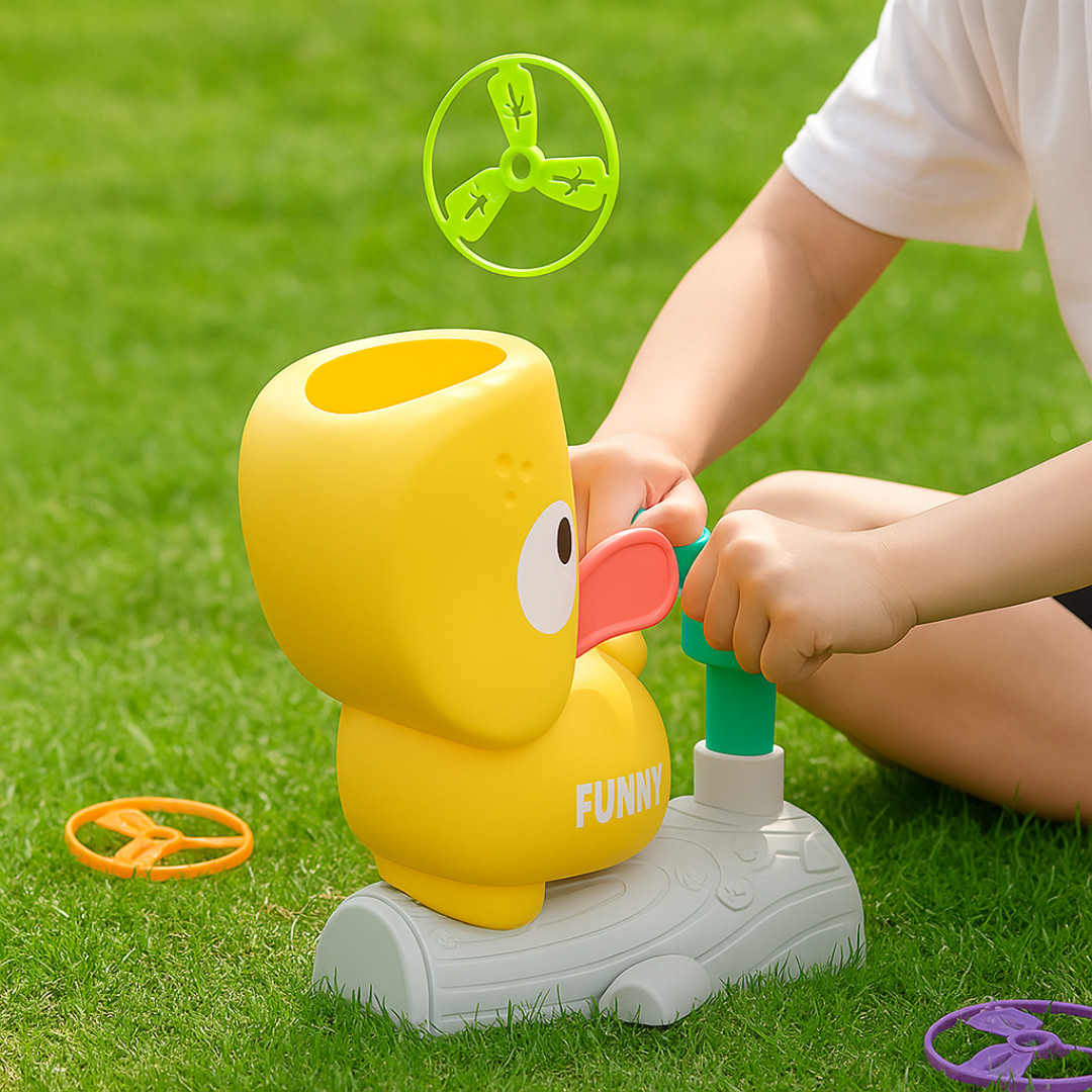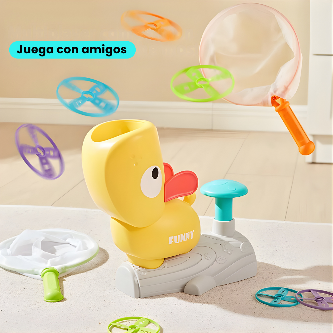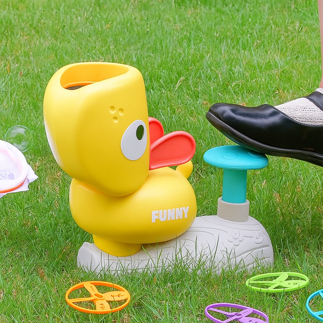 ¡Hacelos correr, reír y saltar con este juego que vuela alto! El pato lanzador será la estrella de cada tarde al aire libre 🚀