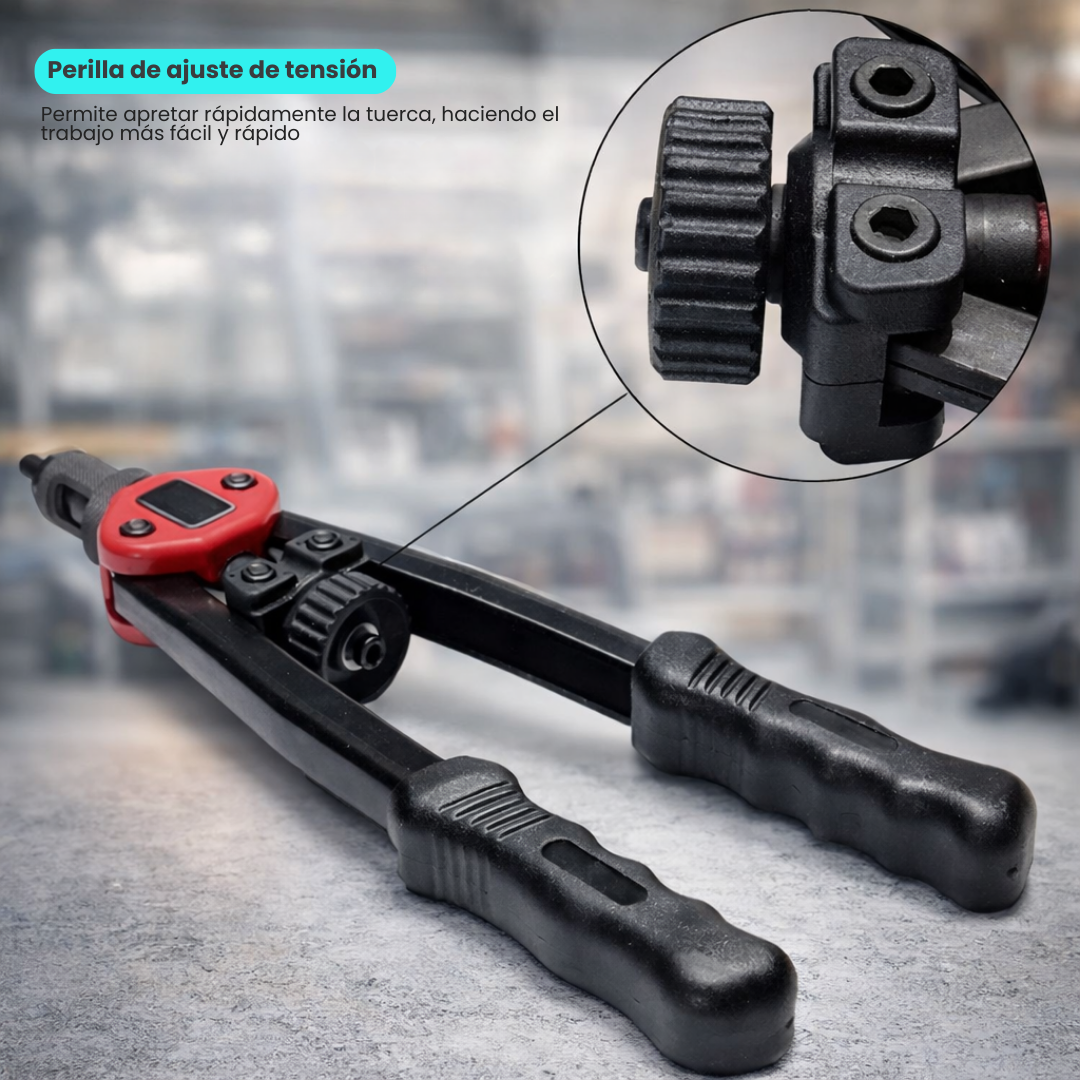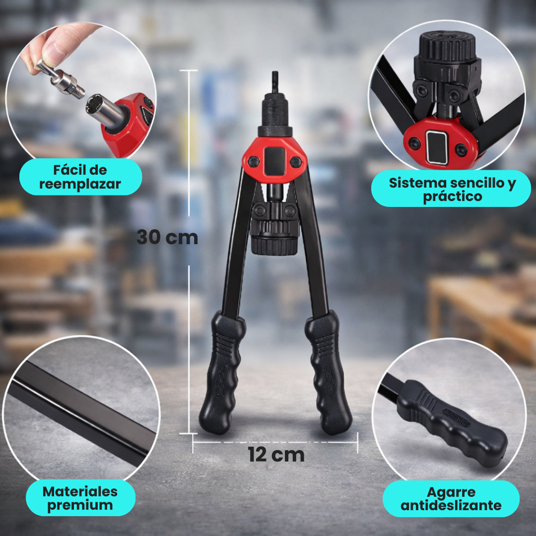 Sus mangos ergonómicos con bisagra doble maximizan la palanca y reducen el esfuerzo en la mano, incluso en remaches grandes. Es perfecta para trabajar en zonas de difícil acceso y para modificaciones en vehículos todoterreno, Jeeps y proyectos mecánicos.